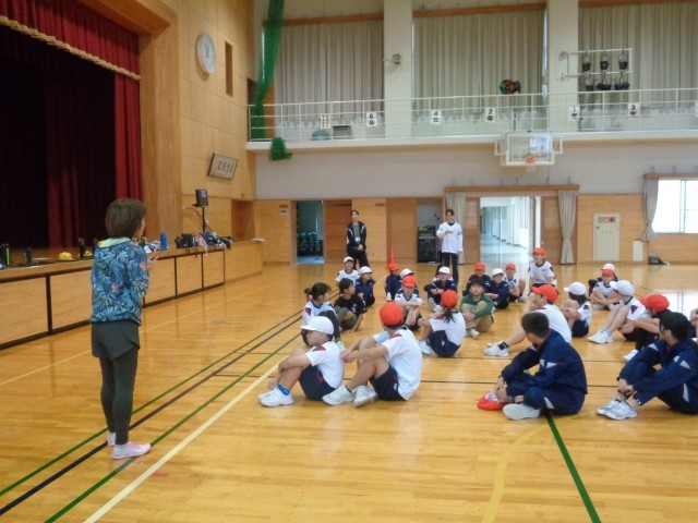 子供たちは、11月に行う「RUN☆RUN記録会」で学んだことを生かそうと、磯野さんの話に熱心に耳を傾けていました。
