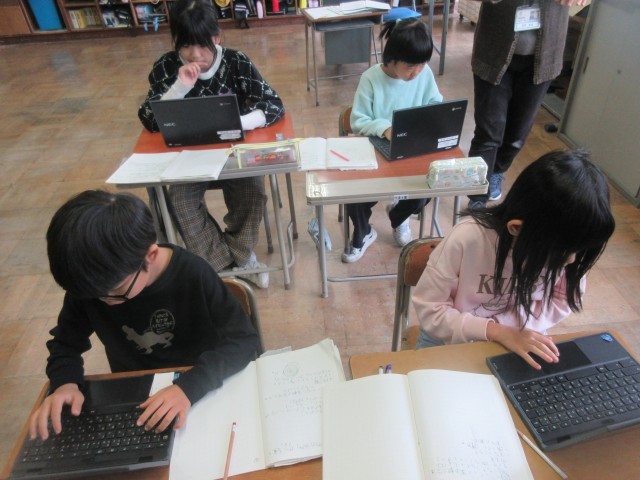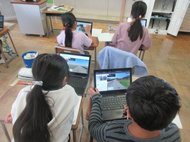 グーグルストリートビューで八幡校区や自分の保育園の周りの様子を見て、火事からくらしを守るための工夫を探りました。
