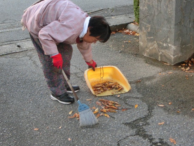 八幡小学校は樹木が多く、秋には学校の敷地内も敷地外も落ち葉でいっぱいになります。