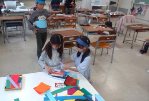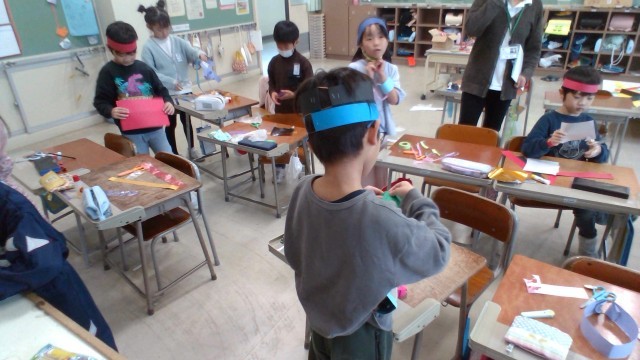 今日は、画用紙やタフロンテープをホッチキスでとめて、わっかをつくりました。
