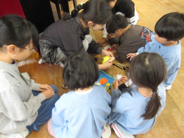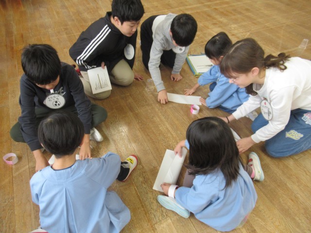 5年生の子供たちは、前回よりもパワーアップした遊びを考えて行きました。輪投げ、紙飛行機飛ばし、ボールゲーム、魚釣り等、前回の交流活動の反省を生かしていました。