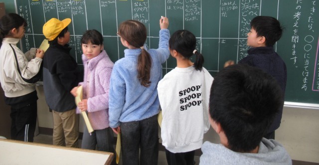 朝、子供たちは、それぞれの施設で一番学びたいことを黒板に書きました。