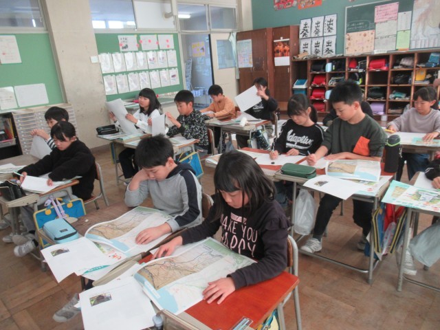 社会科の学習で、牛ヶ首用水土地改良区の事務局長さんに来ていただき、牛ヶ首用水に関するお話をしていただきました。牛ヶ首用水がどのようにして作られ、どんな工夫があるかなどいろいろなことを教えていただきました。牛ヶ首用水が八幡地区の農業や暮らしを支えていることを知った子供たちは、「昔の人の努力がすごい」「水を大切に使いたい」と感想を述べていました。