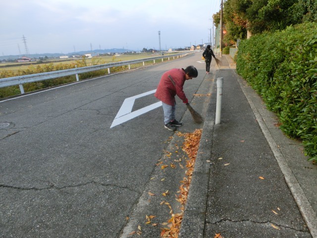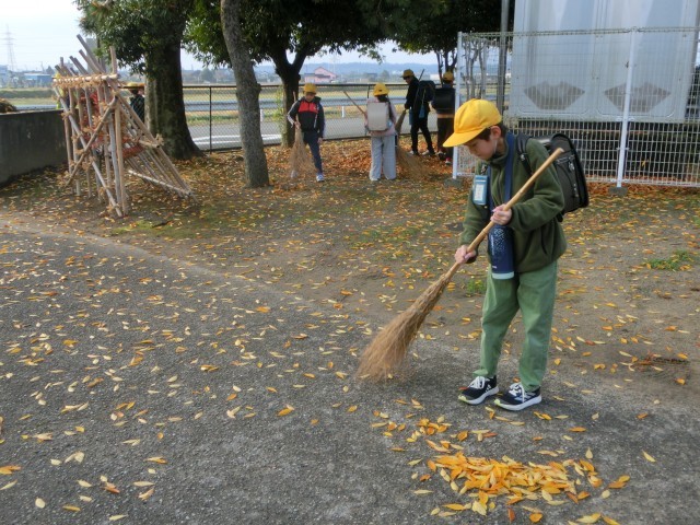 地域の方も朝から学校周辺の落ち葉をきれいにしてくださっていました。