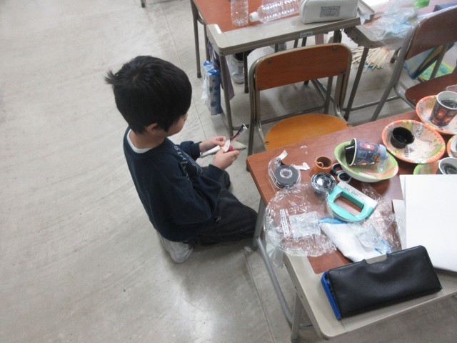 自分の作りたいおもちゃに合わせて、子供たちはそれぞれの材料や道具を集め、今日からおもちゃを作り始めました。