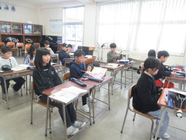 4年生は、音楽科の時間にリコーダーの学習に取り組んでいます。指づかいに気を付け、息の強さを調整しながら、きれいな音を出そうと一生懸命に練習しています。友達同士で演奏を聞き合い、アドバイスをし合い、少しずつ音がそろっていく喜びを感じていました。