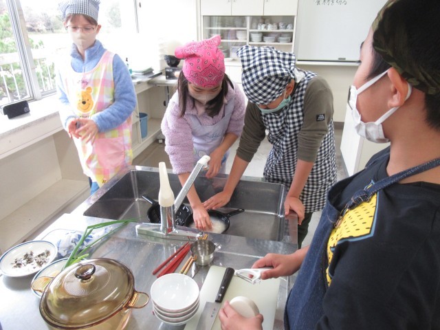 家庭科では、調理実習をしました。ご飯とみそ汁をつくりました。みそ汁は、煮干しから出汁を取りました。