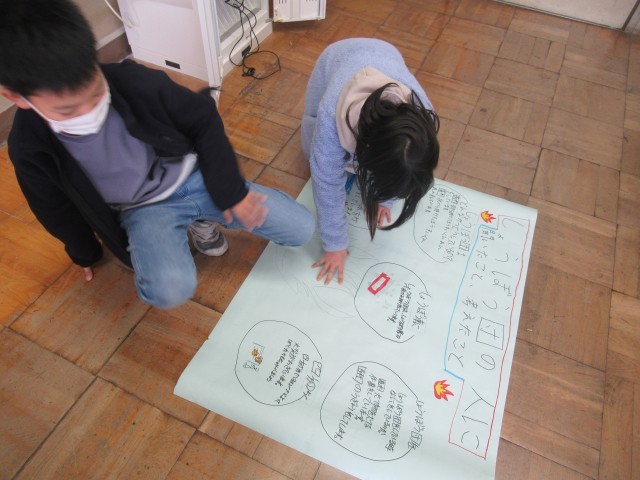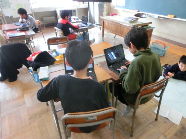 4年生は、防災について自分たちが選んだ課題について、学習を進めています。情報を調べたり、現地にある標識や施設を確認したりしながら、危険を防ぐために自分たちができることをまとめています。どのグループも、学んだことを分かりやすく伝えようと資料づくりを工夫しています。