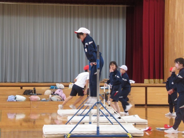 今回は、まず全体でマット運動と鉄棒運動をした後、選択制で好きな方に取り組みました。