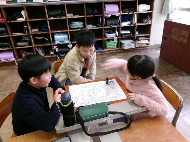 学活の時間には、冬休みの思い出スゴロクを行いました。元気よく「あけましておめでとうございます!」と挨拶するなどミッションがあり、教室には楽しそうな声と笑顔が広がっていました。