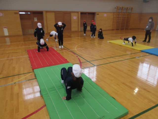特に、うさぎ跳びでは、手を大きく前に出したり、足を高く上げるスーパーうさぎ跳びにチャレンジしました。