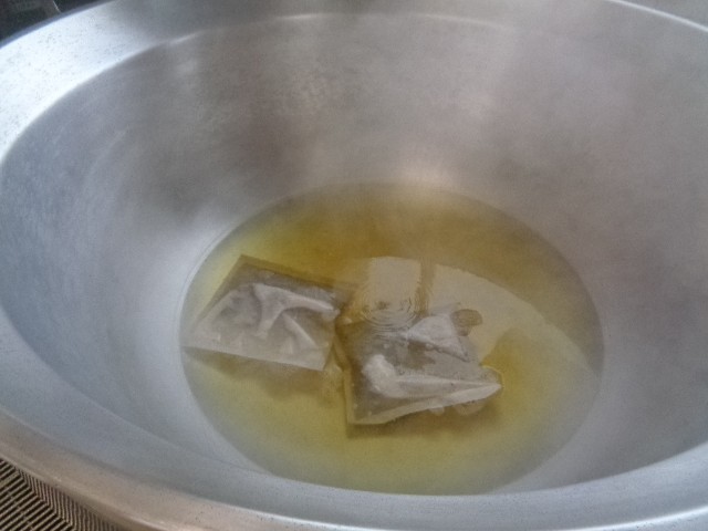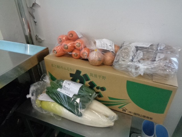 給食週間3日目です。今日の食材、調理員さんの作業開始時です。