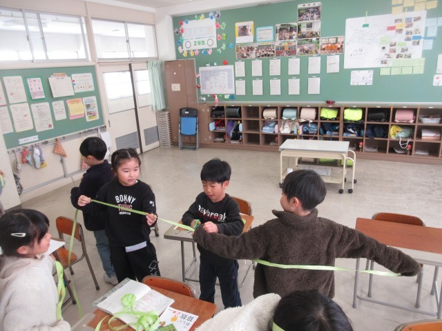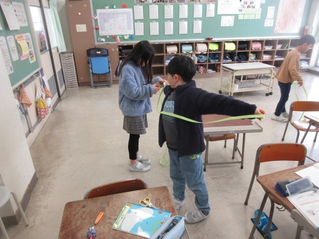 1月30日(金)2年生 算数「両手を広げた長さはどのくらい?」