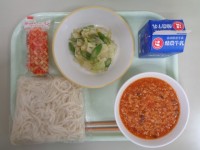 今日の献立は、ごはん、カレーライス、フルーツゼリーミックス、福神和え、牛乳 です。