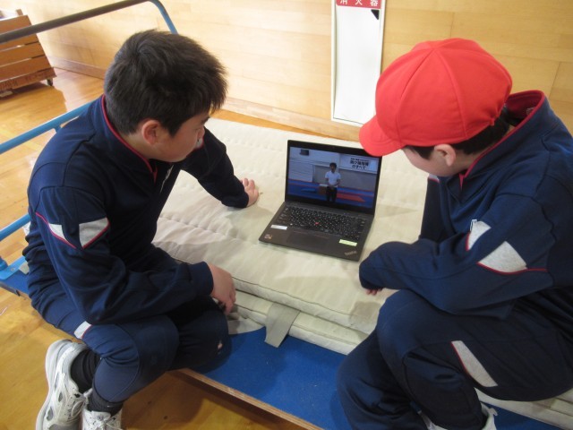 動画を見てコツを知ろうとしたり、友達にアドバイスをしたりする姿が見られました。