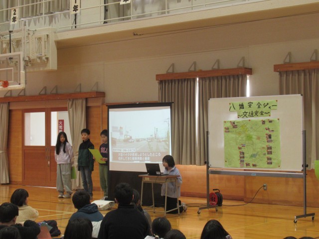 総合的な学習の時間に交通安全について学んできた交通安全班が、