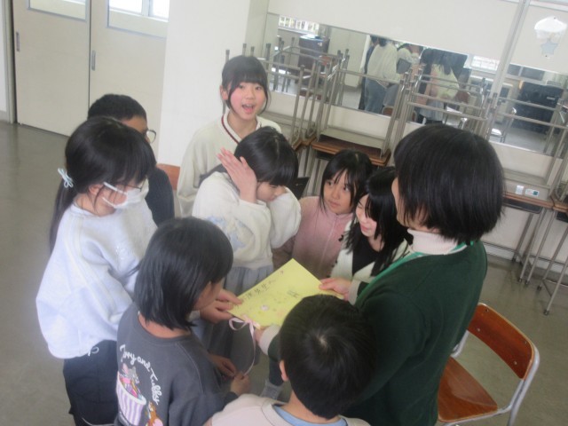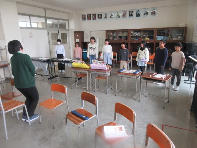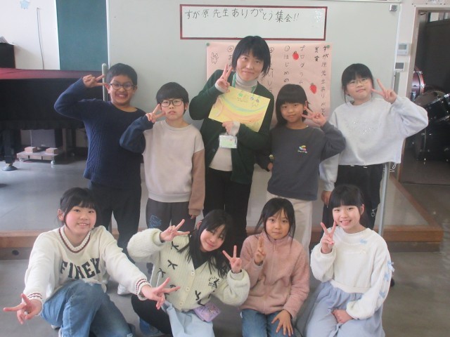 社会や音楽の授業でお世話になった先生に1年間の「ありがとう」を込めて集会を開きました。