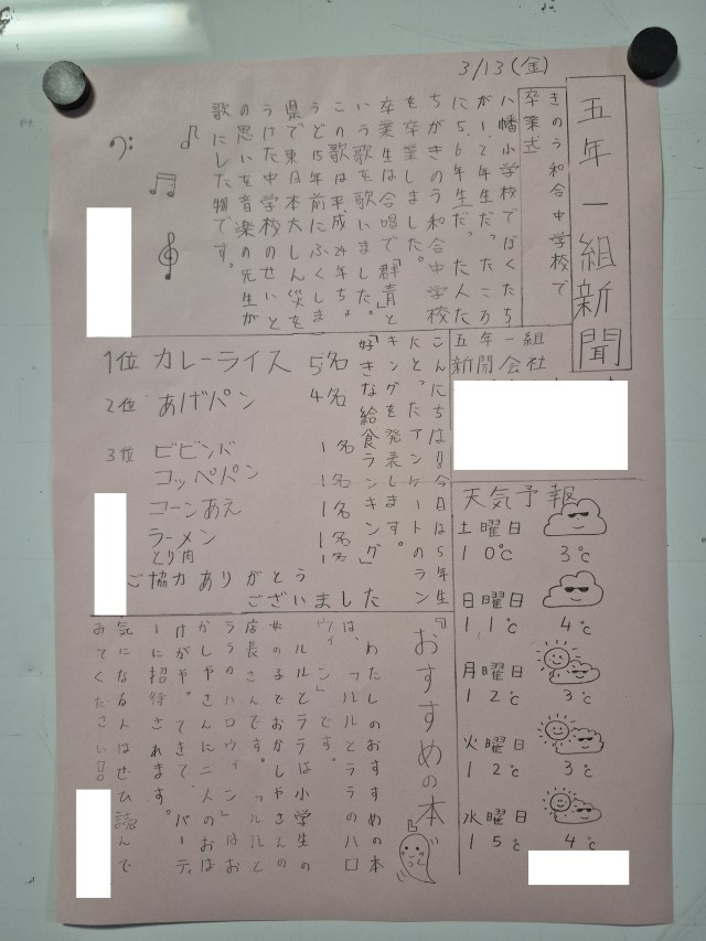 3月13日(金)5年 「休み時間と会社活動」