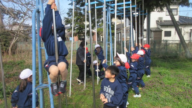 3月16日(月) 1年体育「遊具で遊ぼう」