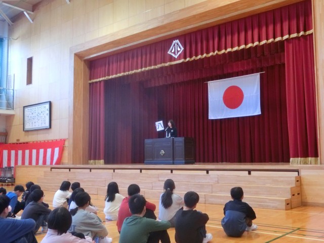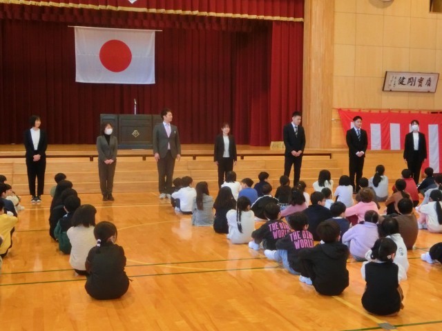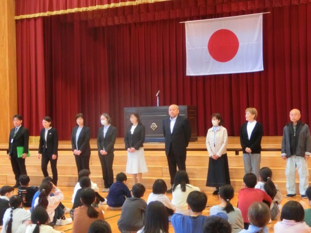 着任式では校長先生を含め、新たに八幡小学校へ着任した4名の先生方との出会いがありました。