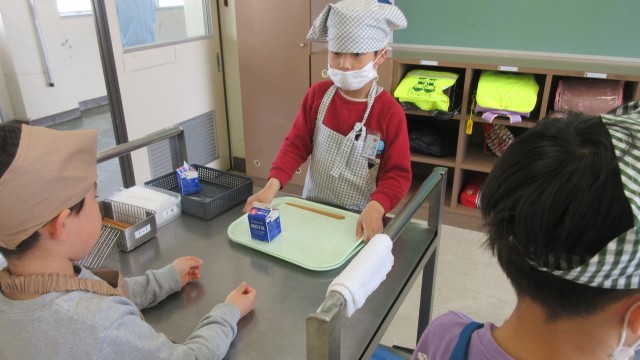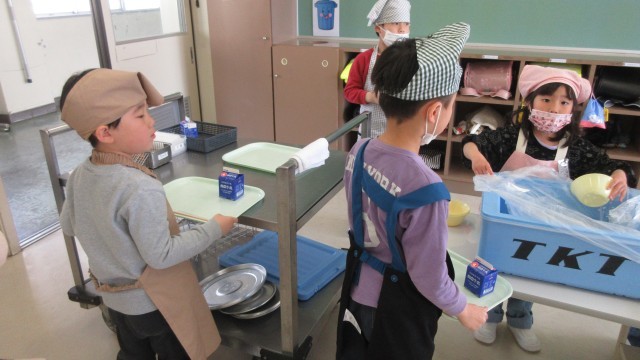 1年生が楽しみにしていた給食がはじまりました。まずは準備からスタートです。いざ当番が始まると、その表情は真剣そのもの。一人一人が自分の役割をしっかりとこなし、丁寧に配膳を行う姿に、さっそく大きな成長を感じました。今日の献立は、具だくさんの「けんちん汁」。実はその中に、調理員さんからの素敵なサプライズが隠れていました。「あ!ハートの形の人参があった!」 「こっちはひし形の大根だよ!」汁物の中に隠れた、型抜きの野菜を見つけた子供たちは、目を輝かせて大喜び。お友達と見せ合いながら、キラキラした笑顔があふれる楽しい給食デビューとなりました。