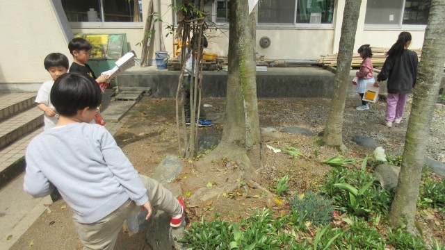 生活科の学習「はるみつけ」で、春の草花等を入れる「はるのたからものボックス」を作りました。「見つけた花をきれいに並べたいな」と、中を細かく分けた箱を作った子や、お弁当箱のような形に挑戦する子、お菓子の箱の形や開き方を上手に生かしている子等、どの子も夢中になって世界に一つだけの入れ物を完成させました。自慢のボックスを手に、いざ校庭へ! 「お弁当箱の中に、春をたくさん詰め込んだよ!」 「お菓子の箱が、キラキラした宝物でいっぱいになった!」 お気に入りの箱を持って歩く子どもたちは、まるで小さな探検隊のようでした。