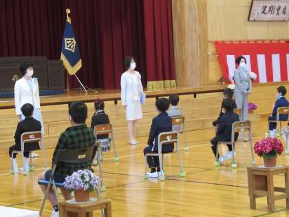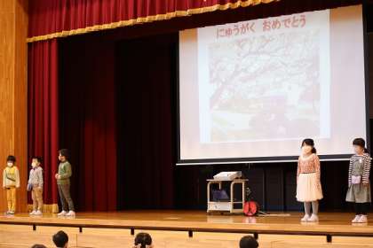 1年生15人が入学しました。姿勢良くお話を聞くことができ、とても立派でした。式の後、2年生が八幡小学校の生活の様子を、分かりやすく元気に紹介しました。もう、立派なお兄さんお姉さんです。
