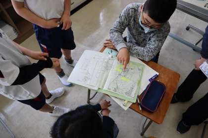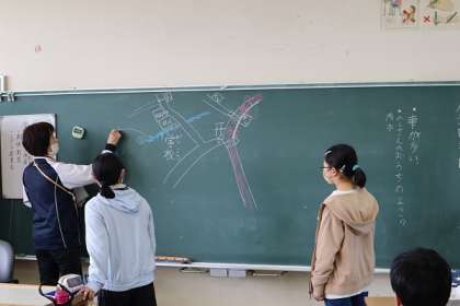 地区ごとに集まり、登校班と危険場所の確認や、安全な登下校の仕方についての話合いをしました。