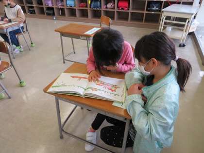 3年生や6年生の皆さんが、自主的に1年生の教室に行って、朝の準備の手伝いをしました。頼りになるお兄さんお姉さんです。