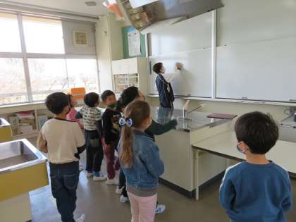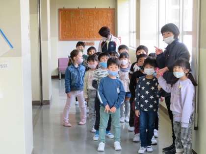 1年生は、学校の中を探検しました。初めて入る教室に興味津々。これからの、いろいろな発見や驚きのスタートです。