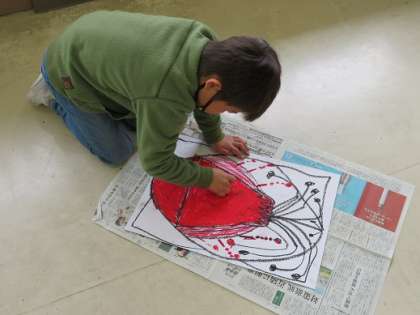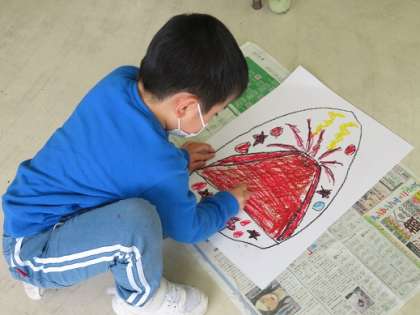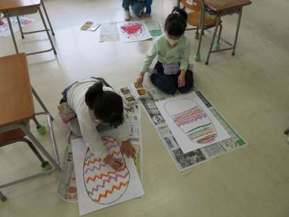 模様の色や形を考えながら、のびのびと大きな卵を描きました。この後、卵から何が生まれてくるのか楽しみです。