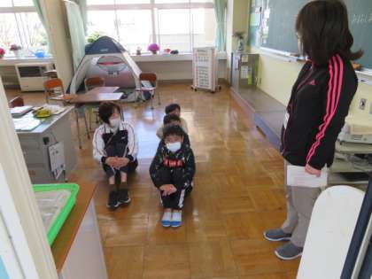 避難の約束「お・は・し・も」を確認したり、静かに並ぶ訓練をしたりしました。本当の火事は起きてほしくないですが、どれだけ真剣な態度で参加していたかが、自分たちの命を守ることにつながります。。