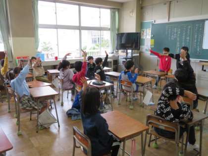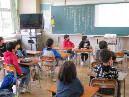 運動会のスローガンの内容について話し合いました。児童会が提案したスローガンの文末をどうするか、真剣に意見を出し合いました。