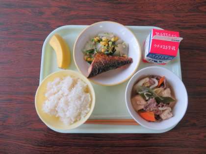 ごはん 鯖の塩焼き すきやき たいこんサラダ バナナ でした。