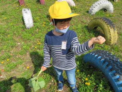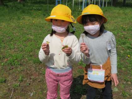 グラウンドへ出かけて、身近な「春」を探しました。暖かくなって咲いた花や動き出した小動物をたくさん見付けました。、