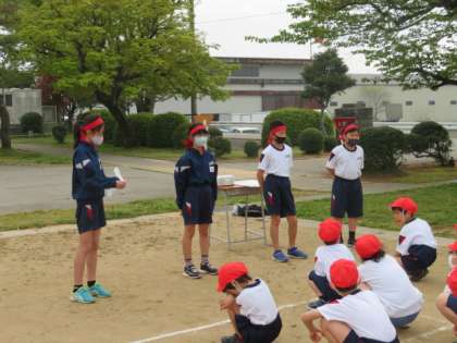 運動会に向けた結団式で、各団の団長、副団長、応援団長、旗手、応援リーダーが自己紹介し、団にかける思いを発表しました。