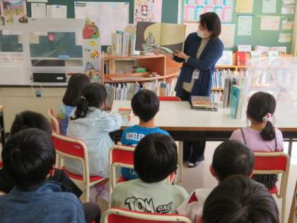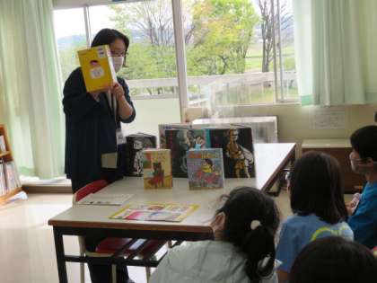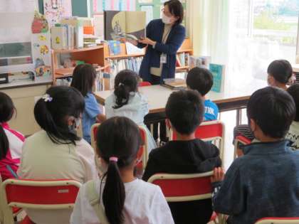 司書の先生が図書室の使い方について説明してくださった後、おすすめの本を読み聞かせしてくださいました。読んでみたい本、たくさんあります。