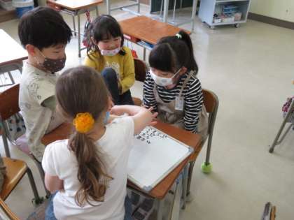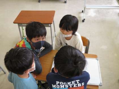 校舎内で探検したい教室や場所はどこか、どんな発見ができそうか、グループで話し合いました。