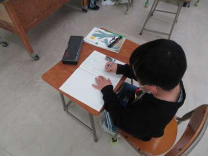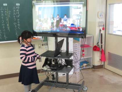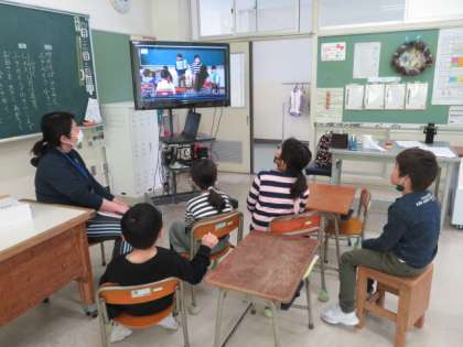 1年生の前で、練習をしてきた「ふきのとう」の音読発表をしました。その時の様子をビデオで振り返っています。緊張したけれど、大きな声で発表できました。