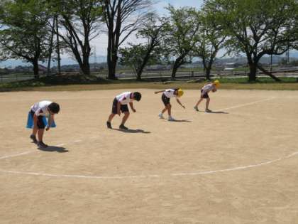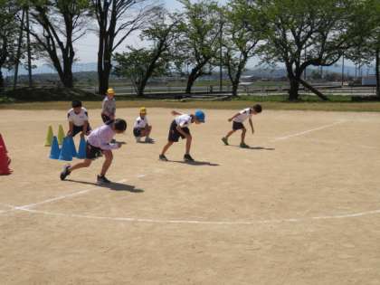 重心を低く、スタートダッシュ。腕全体で斜め前にある「スイカ」を包丁のように切るイメージで、腕を振ることを心がけています。