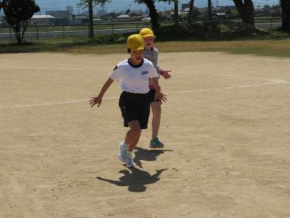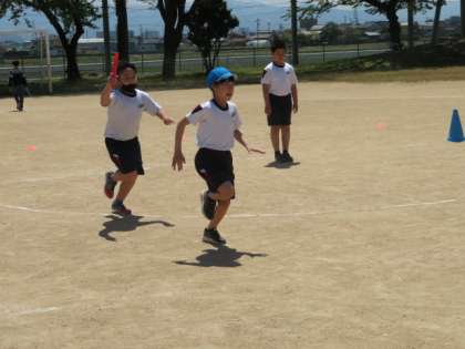 ダッシュするポイントを確認しながら、スピードを落とさずにバトンパスをする練習を繰り返しています。