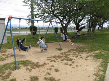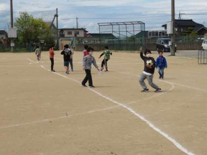 少し晴れ間ものぞいた昼休み。やはり、外での遊びは気持ちがよいです。