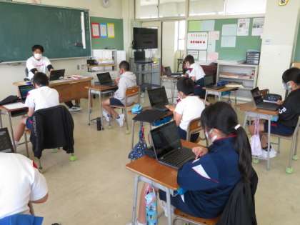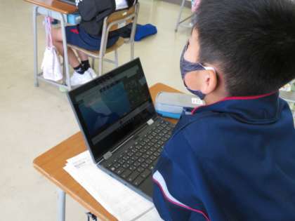連休中に持ち帰るクロムブックの使い方について、説明しました。使い慣れている6年生でも、自分でWi-Fiを設定することは大変なことのようです。使用の際は、家庭でも一声かけていただければと思います。