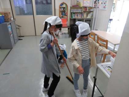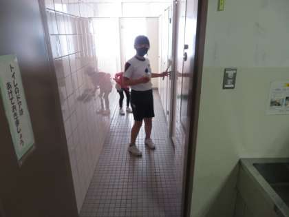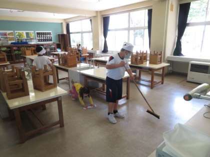 まずは、新しい清掃場所に集合して、班長を中心に掃除の役割分担と内容を確認しました。