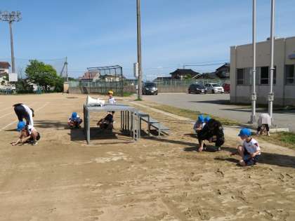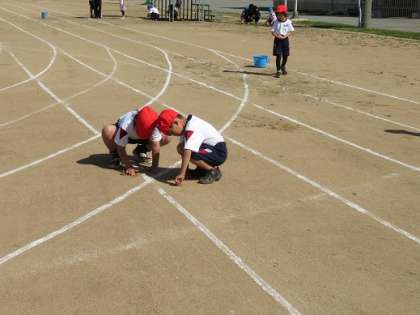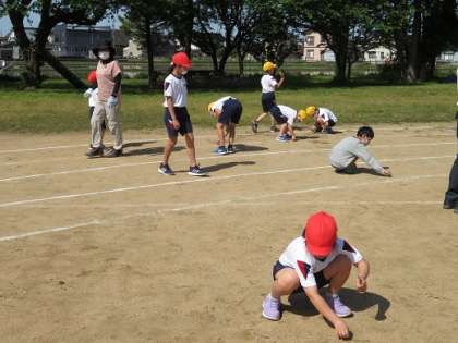 1〜4年生は、生えている草を取ったり落ちている石を拾ったりして、安全に気持ちよく練習ができるようグラウンドを整えました。