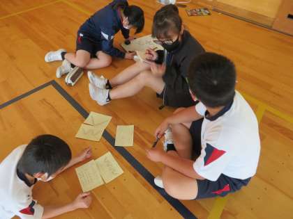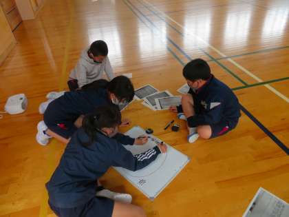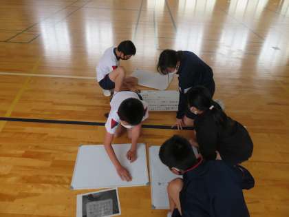 パフォーマンスの発表に向け、各団最終チェックをしています。ホワイトボードに名前を記入しながら、動きのチェックに余念がありません。
