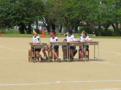 運動会予行練習を行いました。4〜6年生は、自分の係の仕事を確認しながら、準備や進行を行いました。