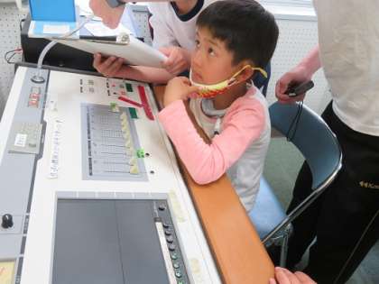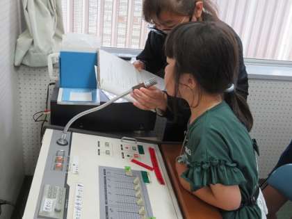 給食の時間に、1・2年生の代表の人に「運動会のめあて」や「がんばりたいこと」についてインタビューしました。「50メートル走や折り返しリレーを最後まで諦めずに頑張って走りたい」と、しっかりとした言葉で、全校のみんなに伝えました。