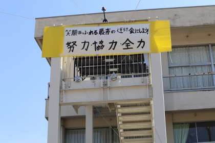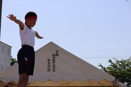 心地よい青空のもと、運動会が開かれました。今年のスローガンは「笑顔あふれる最高の運動会にしよう 〜努力・協力・全力〜」です。