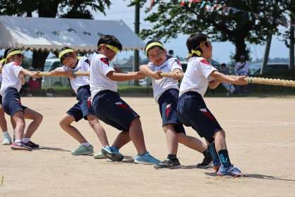 綱引きは、どの団も心を一つにして最後まで競い合った結果、全試合2勝1敗の三つ巴、八幡小学校史上初の全団1位となりました。本当に力が入りました。